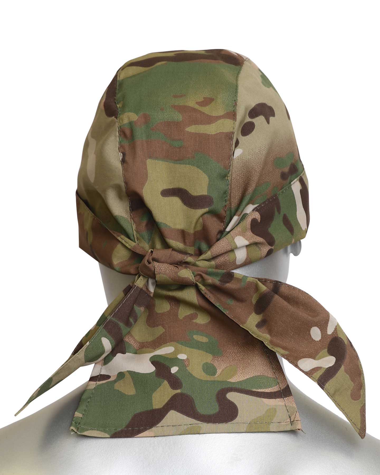 Бандана состоит из двух боковых деталей, средней детали удлиненной в затылочной части, с околышем переходящим в затылочной части в завязки, для регулировки по объёму головы. Срезы затылочной части средней детали обработаны швом в подгибку с закрытым срезом. Ткань верха: «Ти-Си». ГОСТ 32118-2013