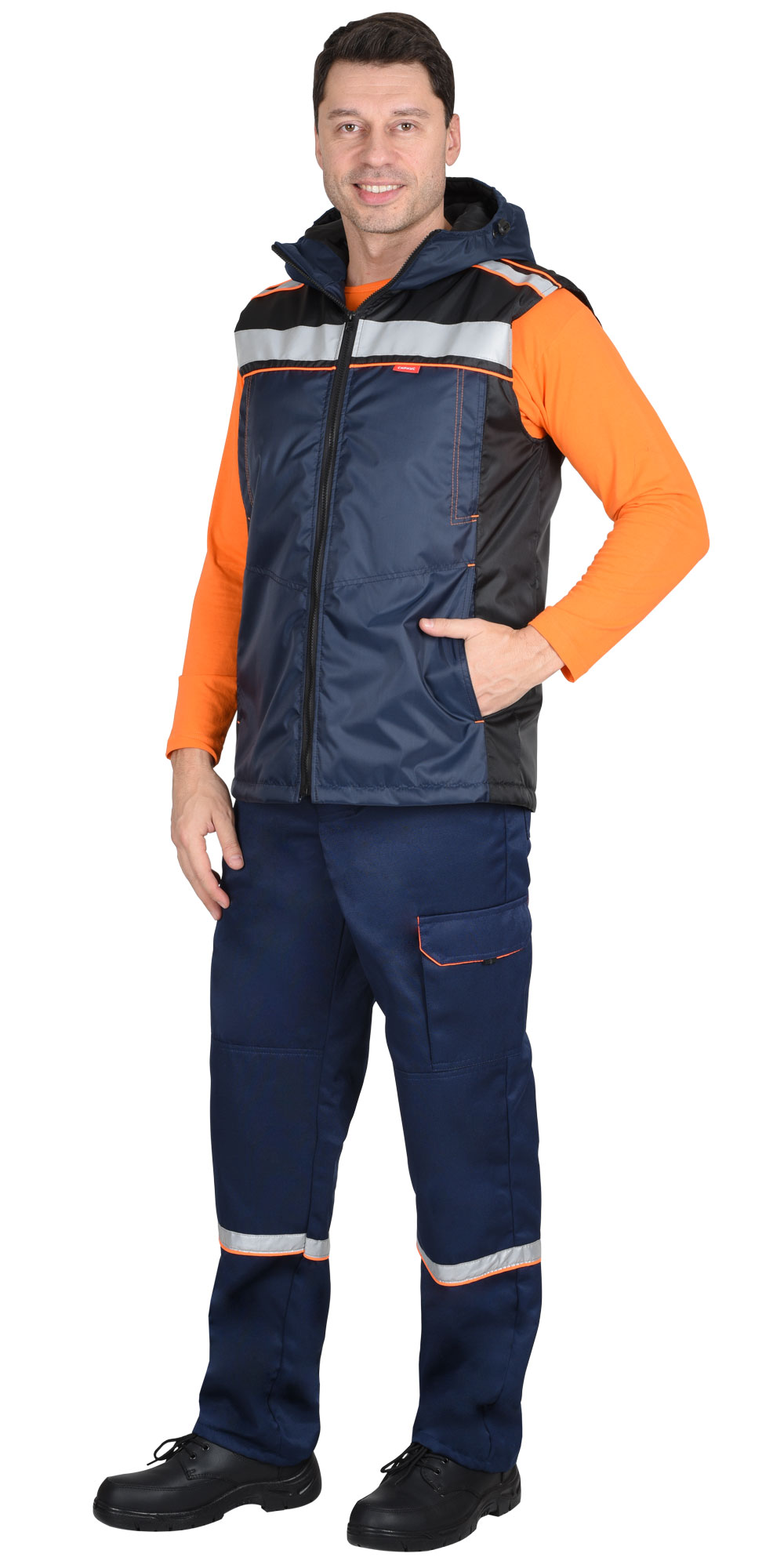 В жилете предусмотрена лента светоотражающая (мелкодисперсная белая) 25мм и 50мм.