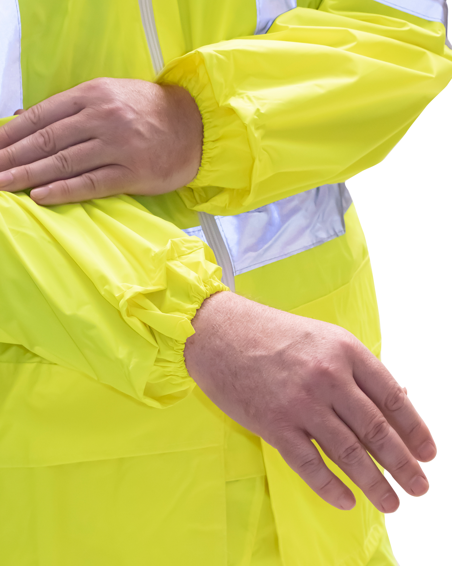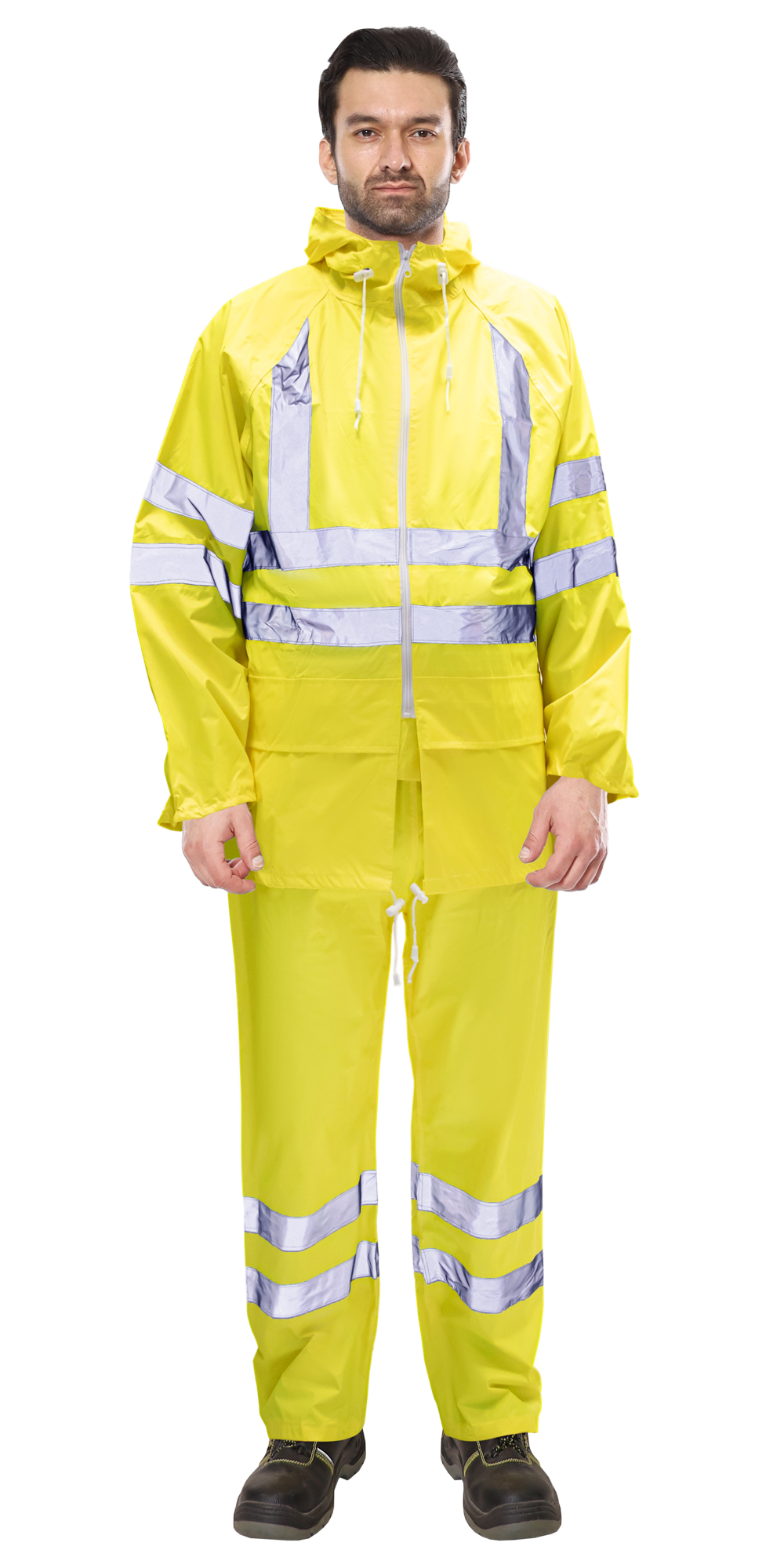 Костюм изготавливается из из прочной плащевой ткани ярко-лимонного цвета с ПВХ покрытием. Вес ткани — 225 гр./метр.кв.