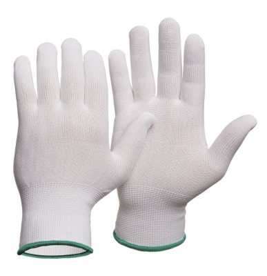 Перчатки белого цвета из нейлона не имеет швов – что обеспечивает отличную вентиляцию без оставления ворсинок на поверхностях других предметов. Перчатки облегают руку плотно, создавая эффект «голых рук».