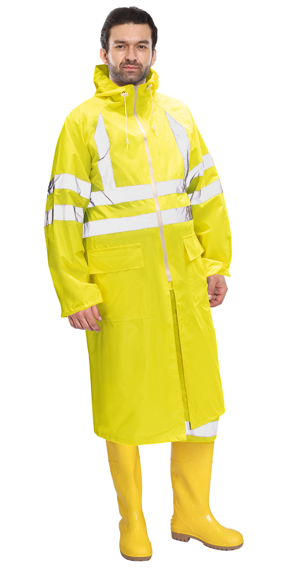 Плащ влагозащитный сигнальный с СОП SIRIUS Профи (225 гр/м2) лимонный (ЧЗ)